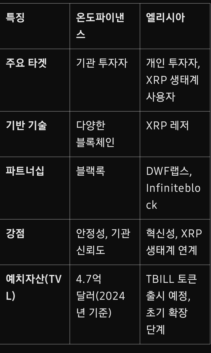 온도파이낸스는 안정성과 기관 투자자 중심의 신뢰성을 강조하며, 엘리시아는 혁신성과 개인 투자자를 겨냥한 접근 방식을 채택했습니다.