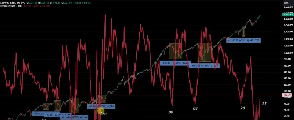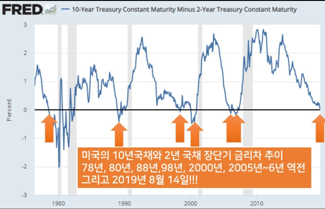 1960년대 이후, 모든 주요 경기 침체는 장단기 금리 역전 이후에 발생했습니다. 주요 사례는 다음과 같습니다.