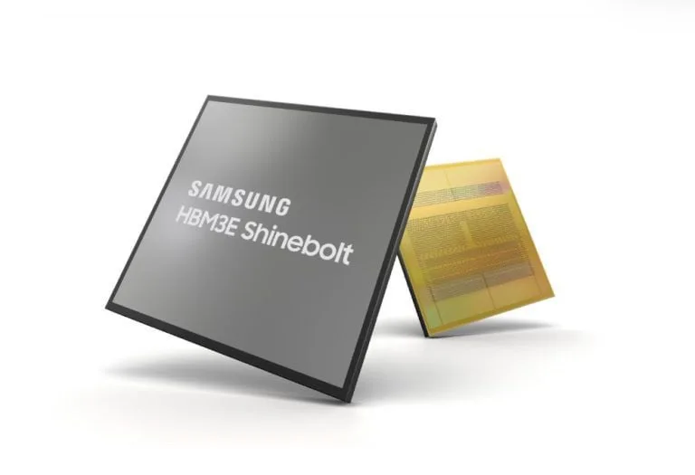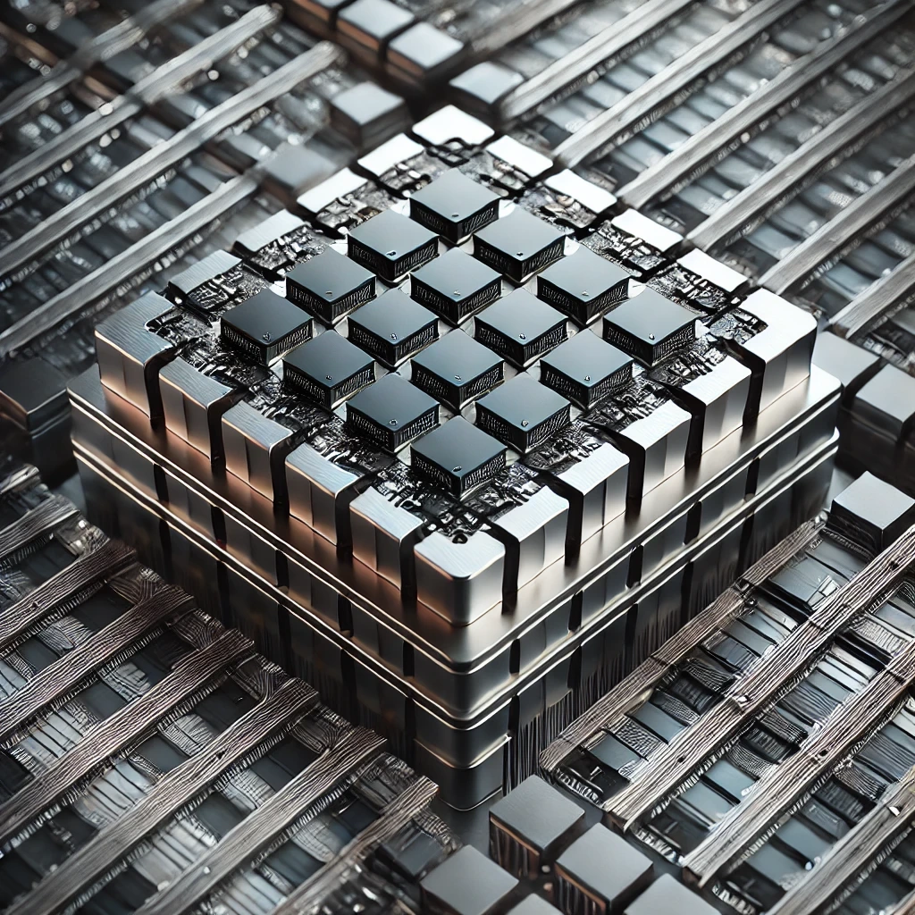 이미지 생성 프롬프트: "최신 HBM3E 메모리 모듈의 고해상도 이미지, 반도체 칩이 수직으로 적층된 구조를 보여주는 디테일한 사진"
