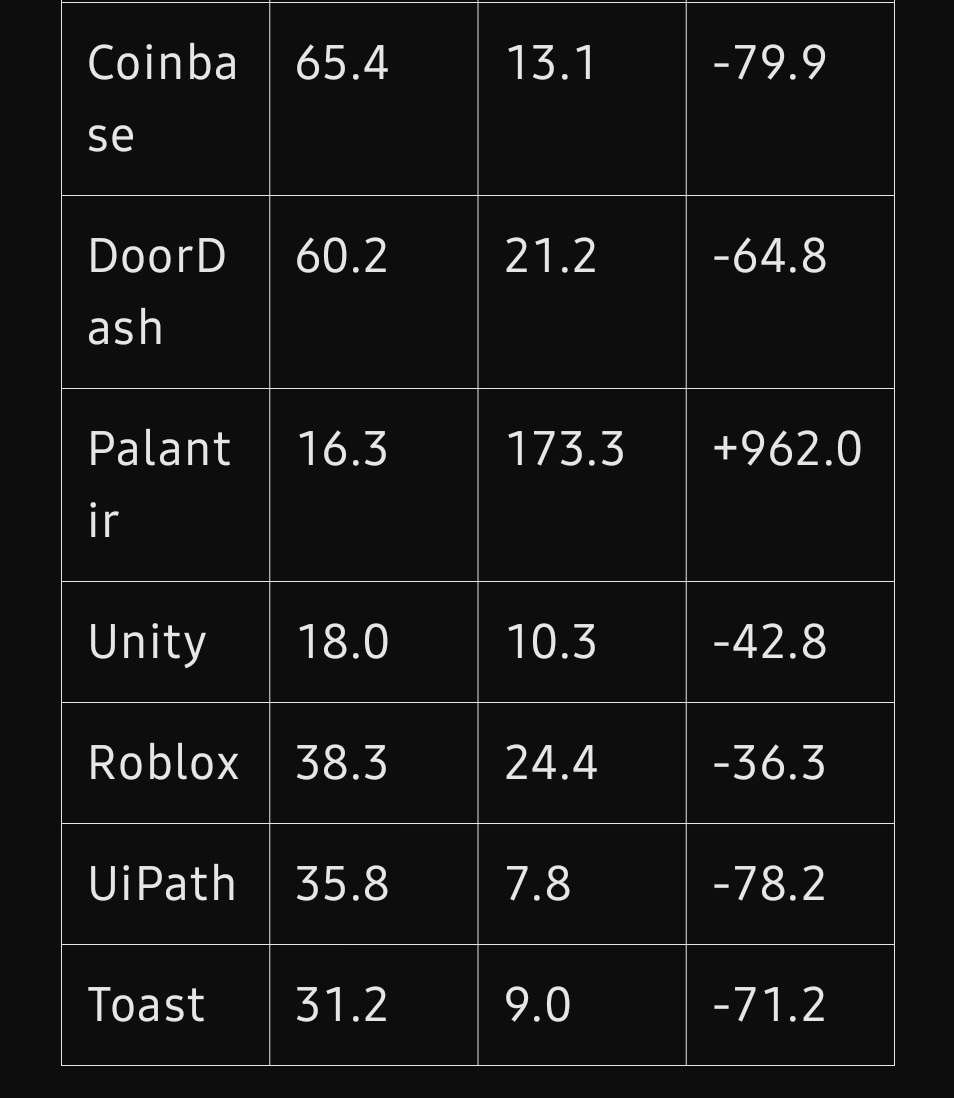 많은 기업이 팬데믹 동안 기술주 열풍에 힘입어 과대평가된 밸류에이션으로 상장했으나, 실제 성과는 이에 미치지 못했습니다.