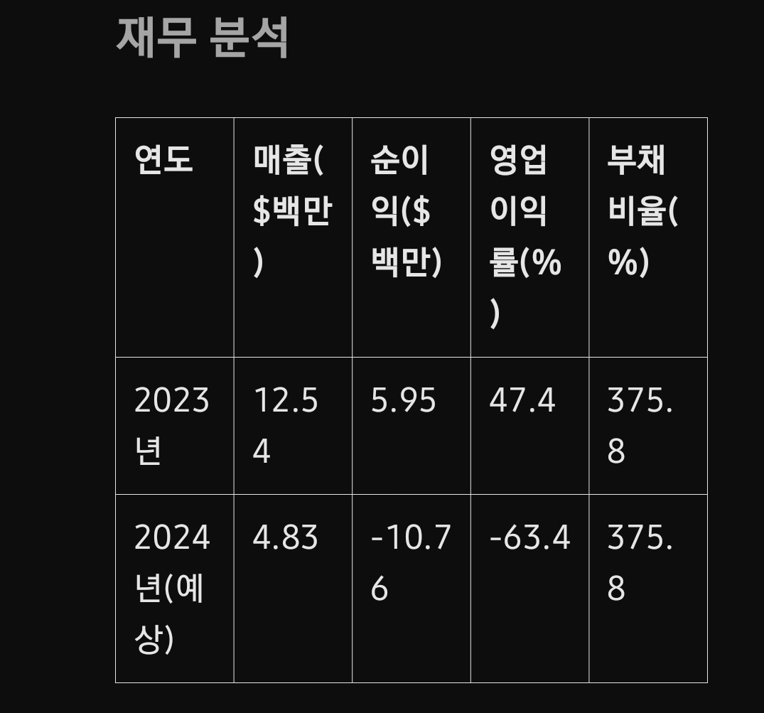 높은 부채비율과 재무 건전성 문제는 주요 리스크로 작용할 수 있습니다.