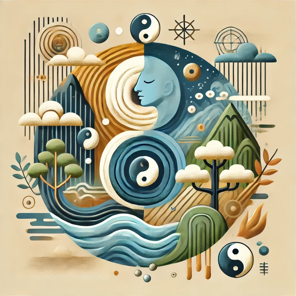 1. 음양오행 이론: 자연의 기본 요소인 목(木), 화(火), 토(土), 금(金), 수(水)의 상생과 상극 관계를 통해 인간과 자연의 조화를 설명합니다.