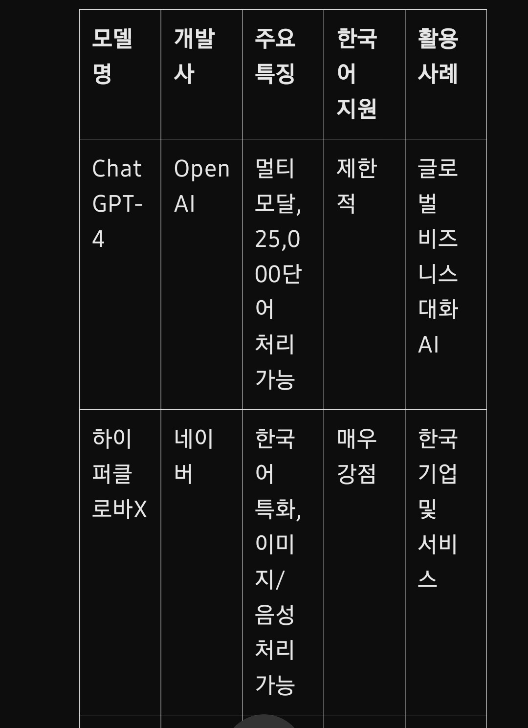 주요 AI 언어 모델 비교