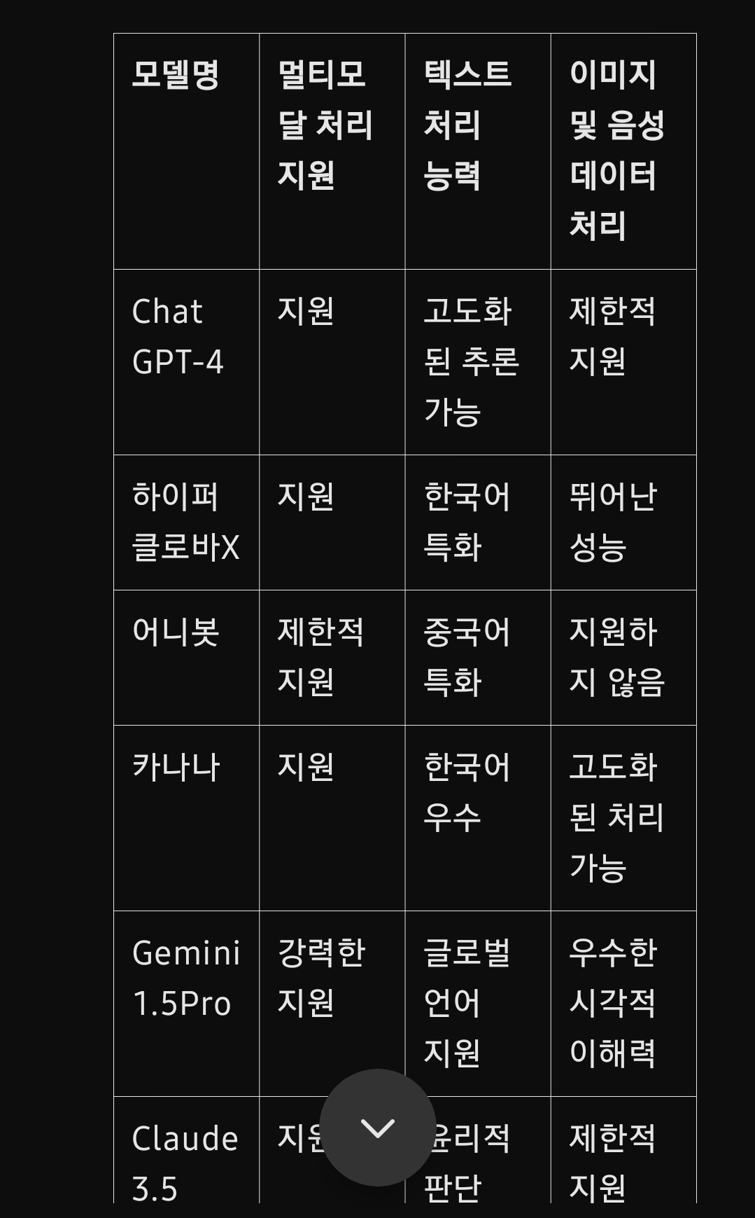 아래는 대표적인 AI 언어 모델들의 주요 특징과 성능을 정리한 비교표입니다.