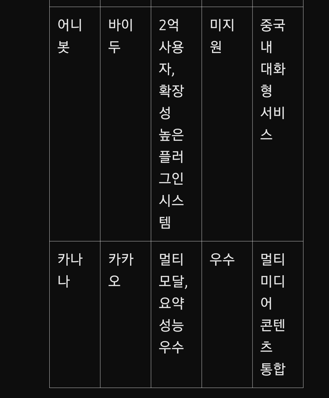 주요 특징: ERNIE 3.5를 기반으로 고도화된 성능, 중국 내 시장 지배력.