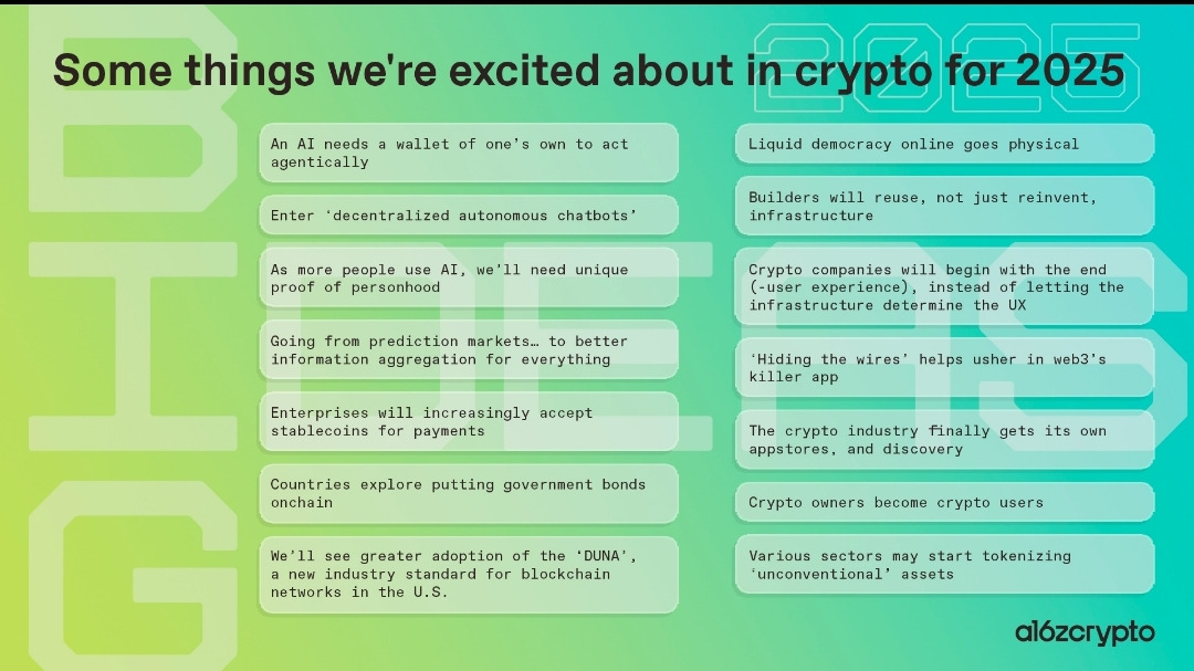 a16z의 2025년 크립토 전망은 AI 에이전트와 RWA가 디지털 경제의 중심축이 될 것을 명확히 하고 있습니다.