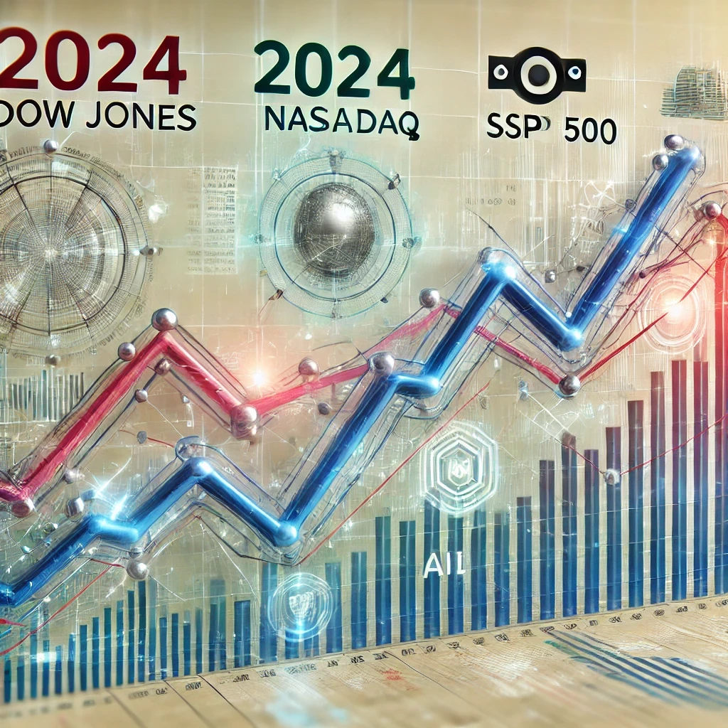2024년은 특히 나스닥 지수가 대형 기술주의 강세에 힘입어 가장 큰 상승폭을 기록했으며, S&P 500 역시 강한 기술주 주도 상승세를 보였습니다.