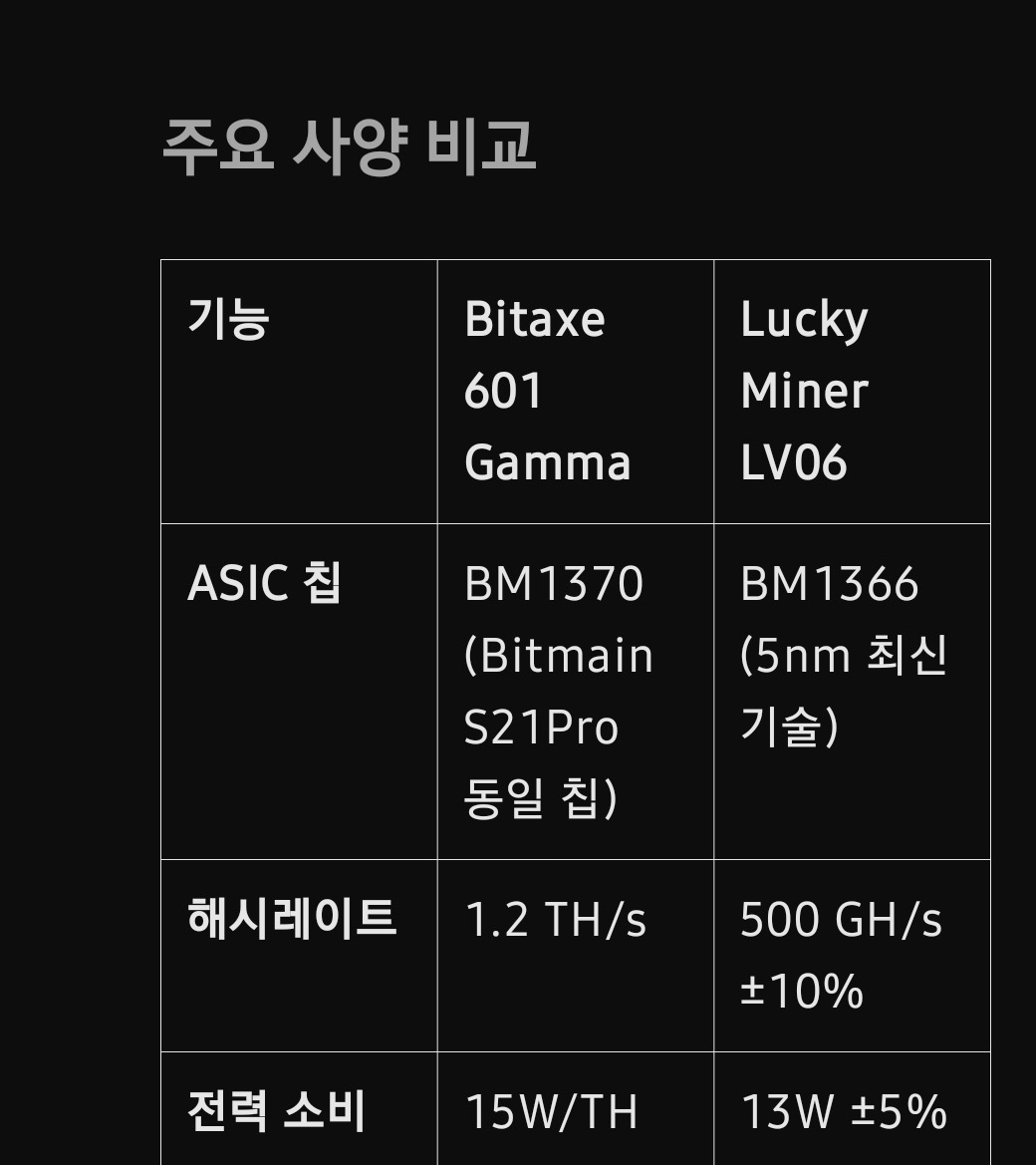 Bitaxe 601 Gamma와 Lucky Miner LV06은 각기 다른 사용자층을 겨냥한 제품입니다. 단순한 솔로 채굴과 에너지 효율을 중시한다면 Bitaxe 601 Gamma를, 다양한 코인 및 채굴 전략을 시도하려면 Lucky Miner LV06을 선택하는 것이 이상적입니다.