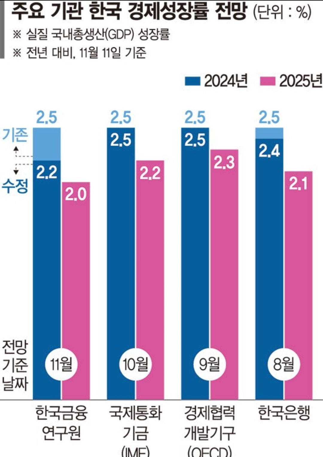 2025년 경제성장률은 약 1.8%로 예상되며, 이는 글로벌 경제 둔화와 국내 경제적 불확실성의 영향을 반영한 수치입니다.