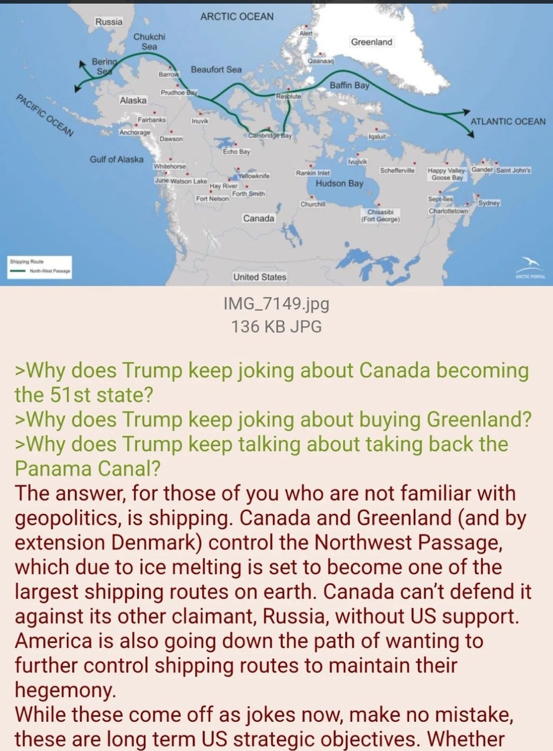 3. 파나마 운하와의 연계: 트럼프는 파나마 운하에 대한 통제권도 언급했는데, 이는 북극 항로와 함께 글로벌 해운 네트워크를 장악하려는 의도로 해석됩니다.