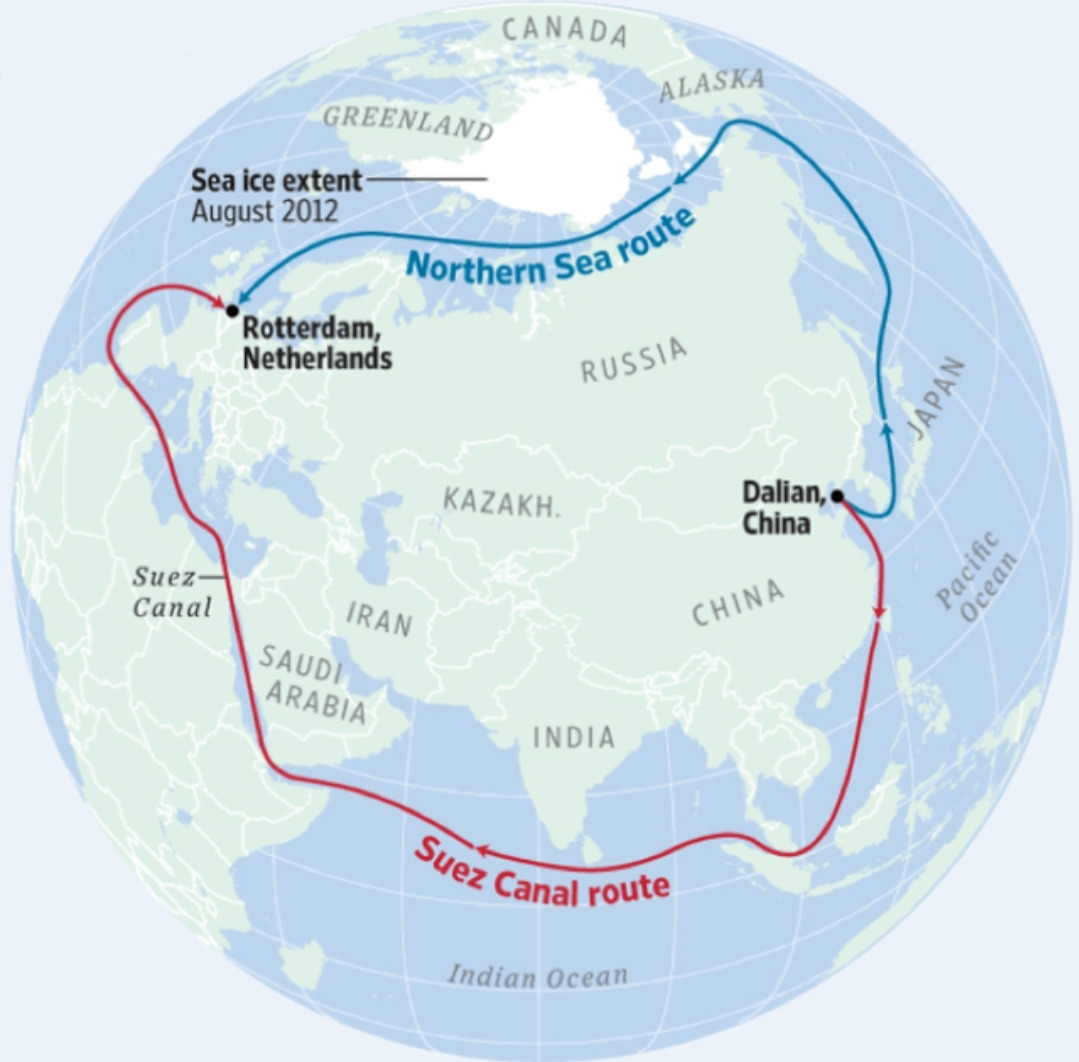 1. 북극 항로 통제: 기후 변화로 인해 북극해 항로의 상업적 이용 가능성이 높아지고 있습니다. 이 항로는 아시아와 유럽을 연결하는 최단 경로로, 기존 항로보다 거리와 시간을 크게 단축할 수 있습니다.