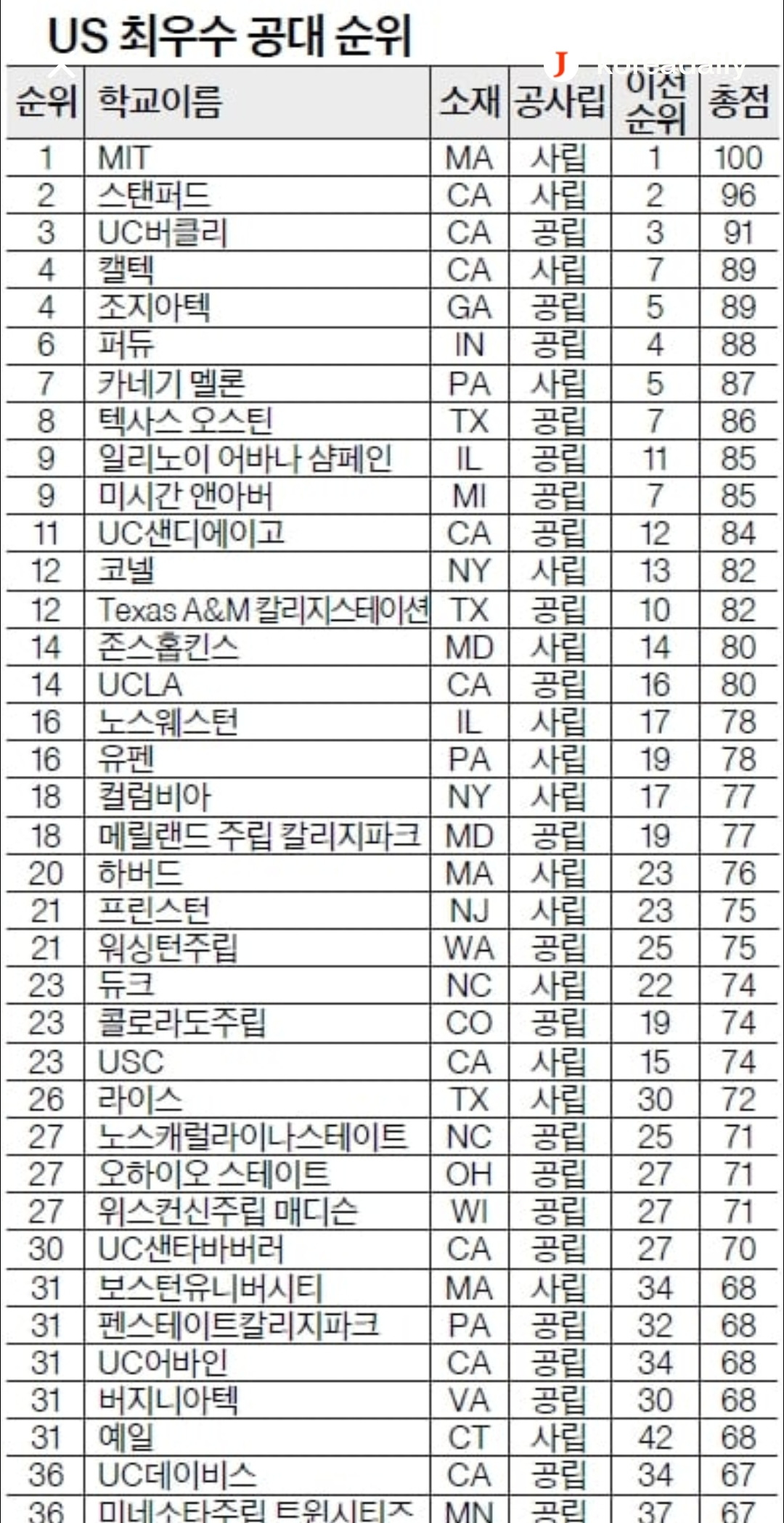 전통적으로 공대 강자인 이들 대학은 10위권 밖으로 밀려나며 미국 대학들의 위상이 상대적으로 하락하고 있음을 보여줍니다.