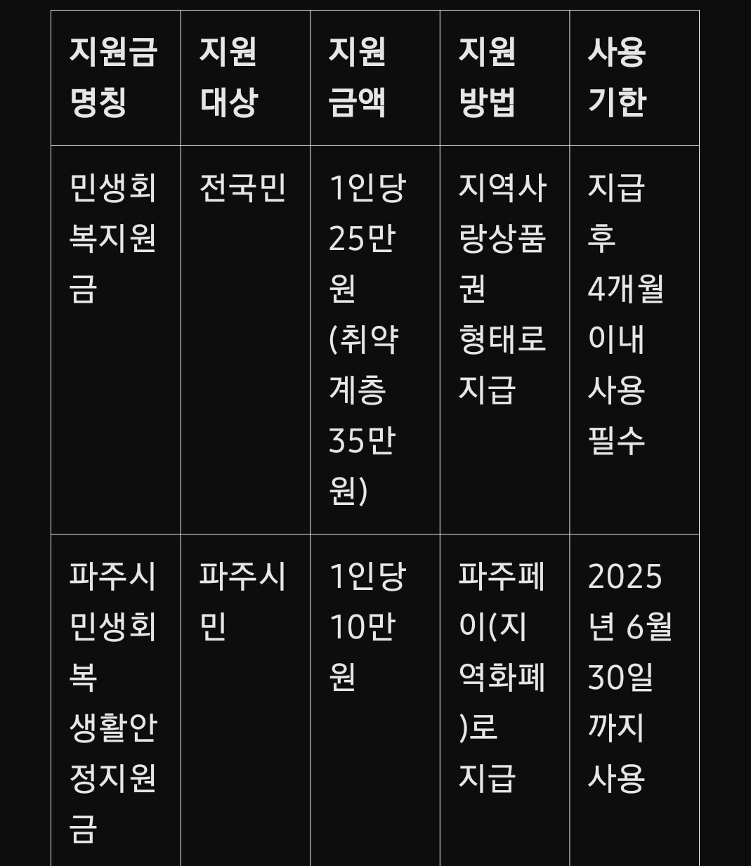2025년 민생안정지원금 안내 - 지원내용, 대상, 방법, 기간 총정리