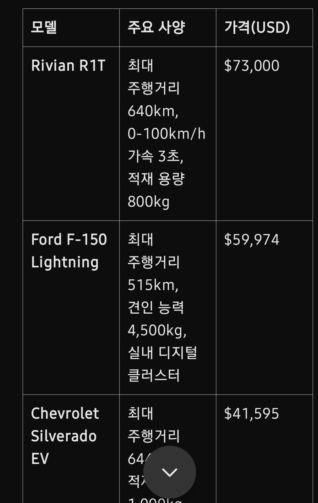 사이버트럭은 기존의 전기 픽업트럭들과 경쟁하며 다음과 같은 모델들이 주요 경쟁상대로 꼽힙니다.