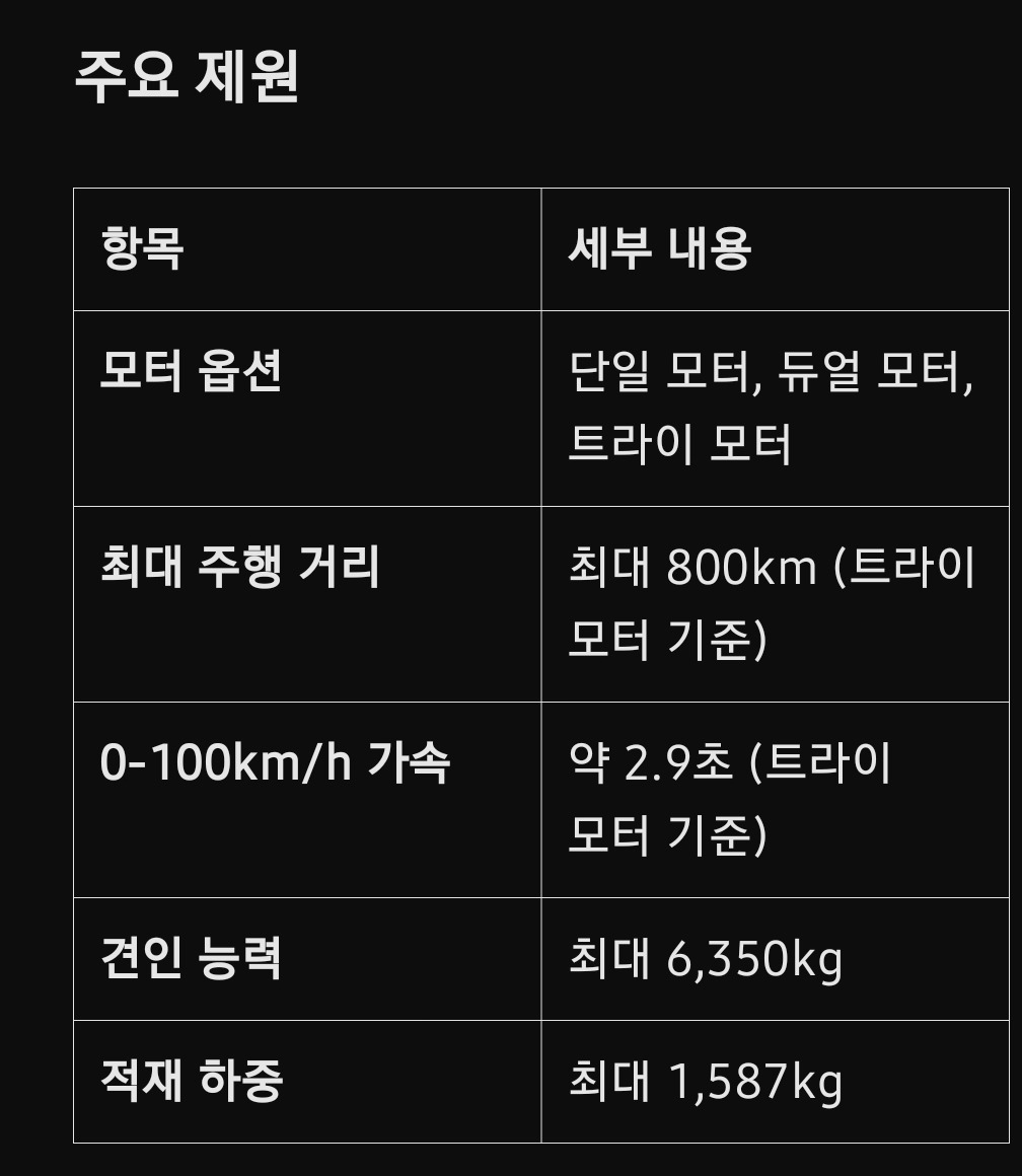 성능 우위: 트라이 모터 모델의 경우 800km 이상의 주행거리를 제공하며, 이는 대부분의 경쟁 모델을 상회합니다.
