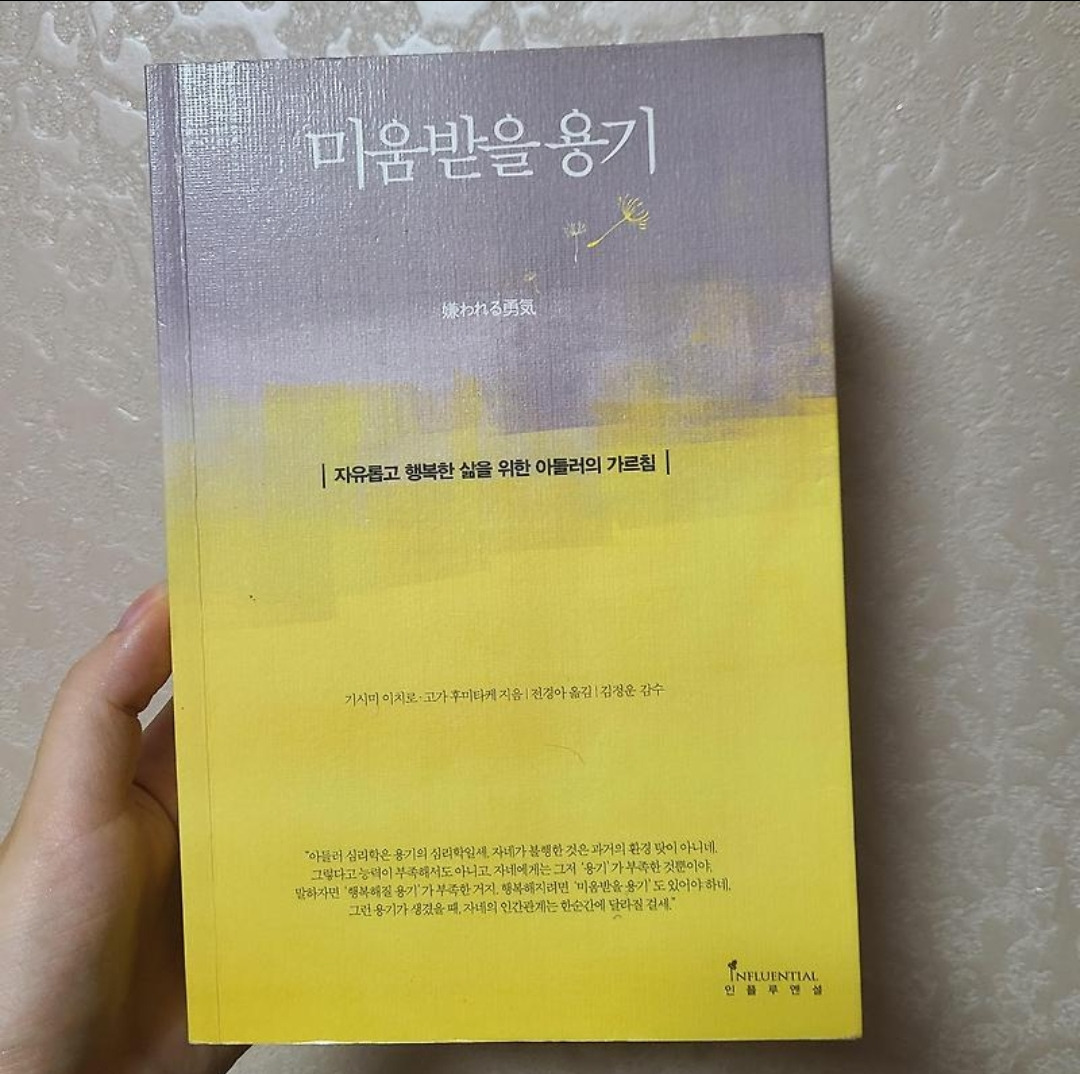 ‘미움받을 용기’는 아들러 심리학(개인 심리학)의 원리를 일반 독자들이 이해하기 쉽게 풀어낸 대화 형식의 책입니다.