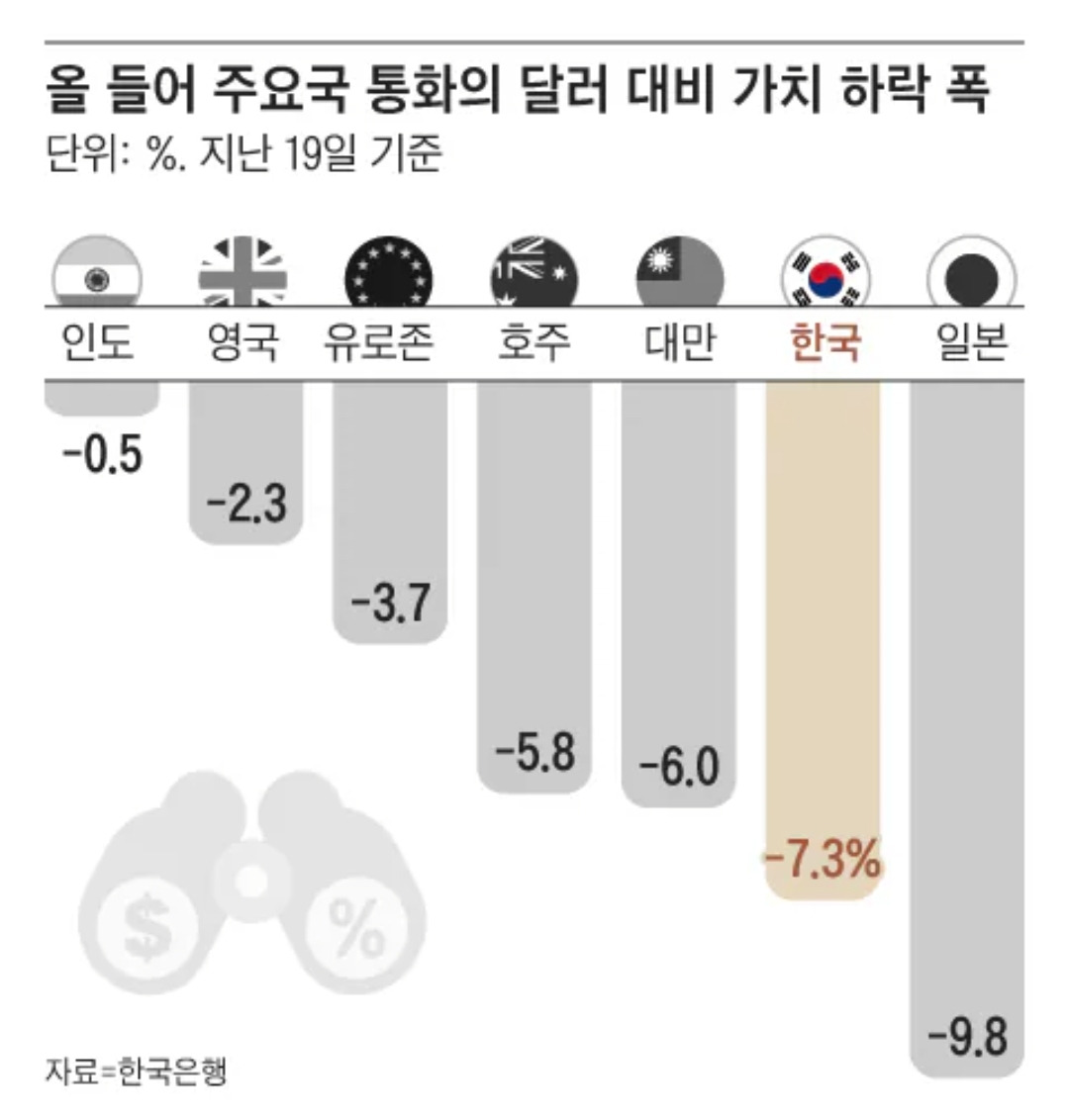 원화 가치 하락의 영향