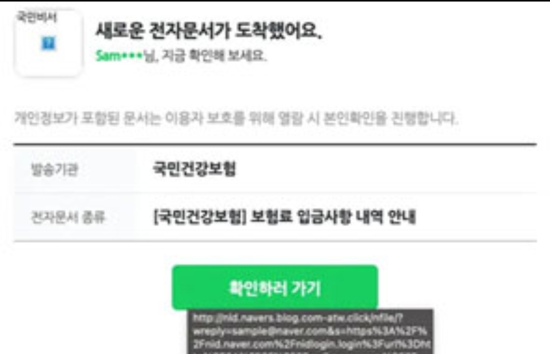 출처 미상의 메일 또는 문자 함부로 클릭하지 마시기 바랍니다.