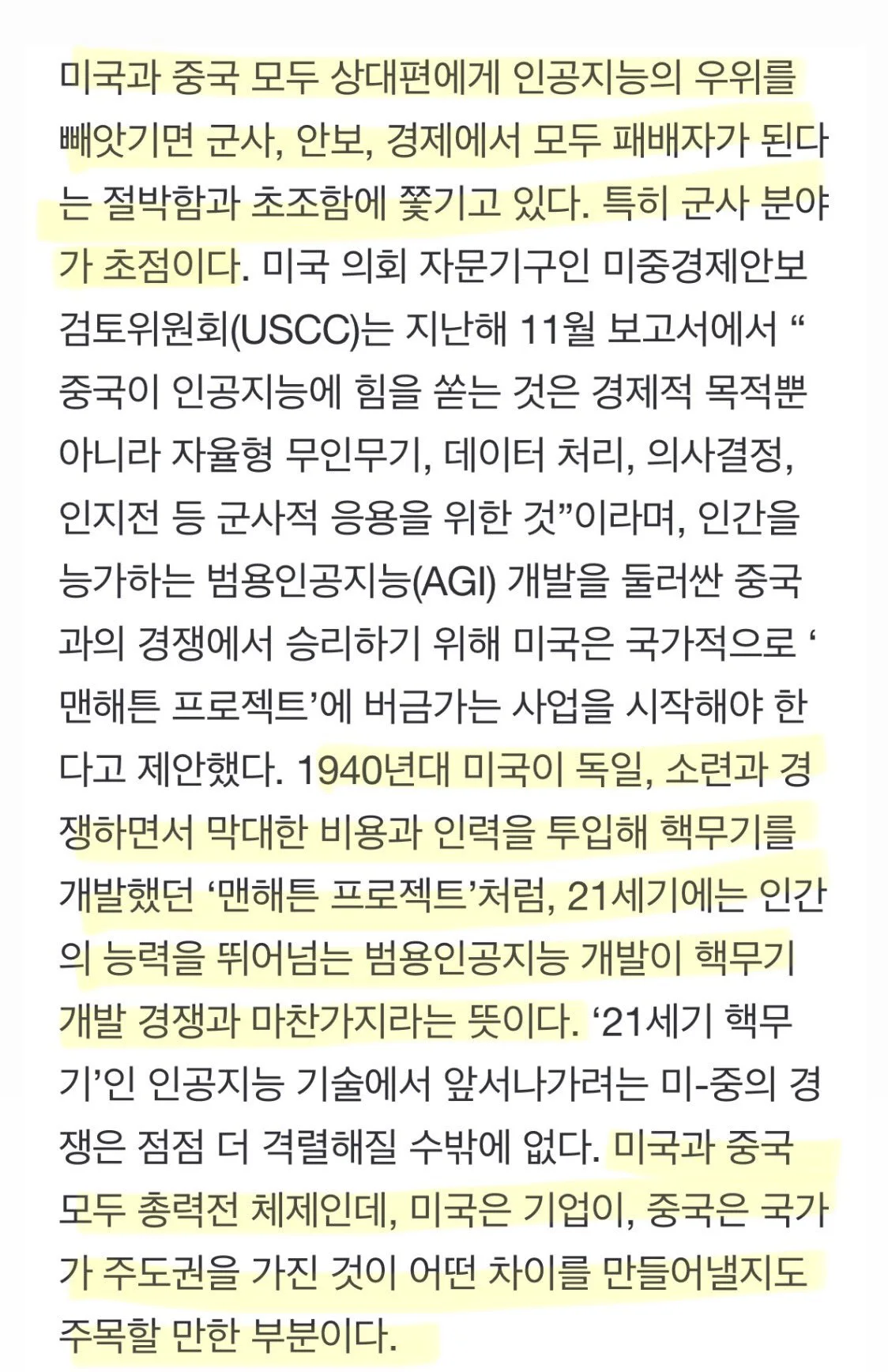 미국은 AI 기술 개발에서 여전히 세계적인 선두를 유지하고 있지만, 중국의 급속한 성장은 큰 위협으로 간주됩니다. 미국은 AI 맨해튼 프로젝트를 통해 이러한 도전에 대응하고자 합니다.