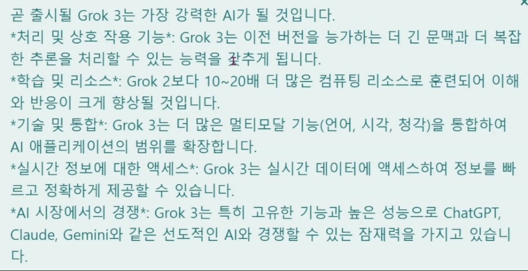 결론적으로, AI 기술의 발전은 사용자 경험을 혁신적으로 바꾸는 동시에, 글로벌 기술 경쟁의 새로운 장을 열고 있습니다. Grok 3와 같은 모델은 이러한 변화를 이끄는 선두주자가 될 것으로 보이며, 앞으로의 발전이 더욱 기대됩니다.