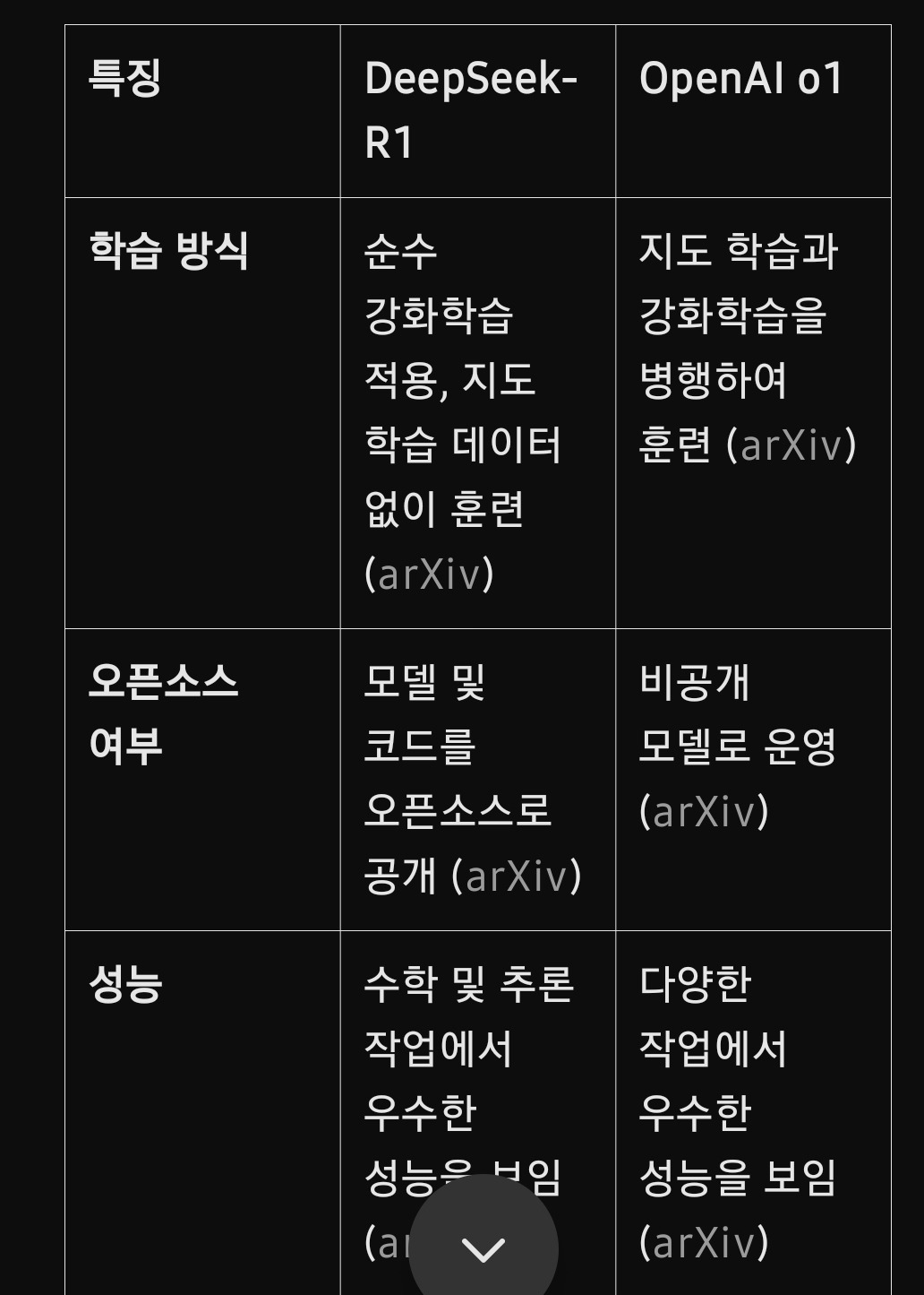 DeepSeek-R1은 OpenAI의 o1 모델과 비교할 때, 다음과 같은 차별점을 보입니다.