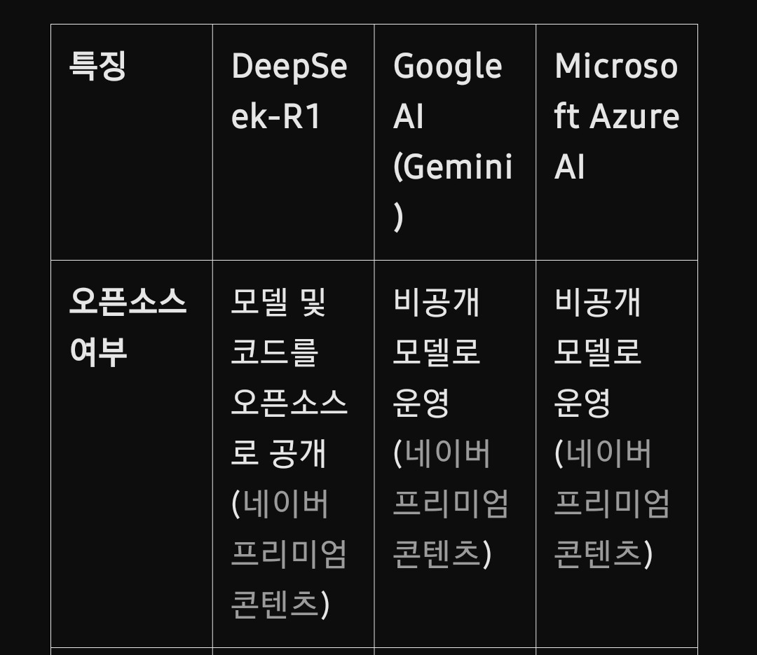 오픈소스 접근: DeepSeek는 R1 모델을 오픈소스로 공개하여 연구 커뮤니티의 발전에 기여하고 있습니다.