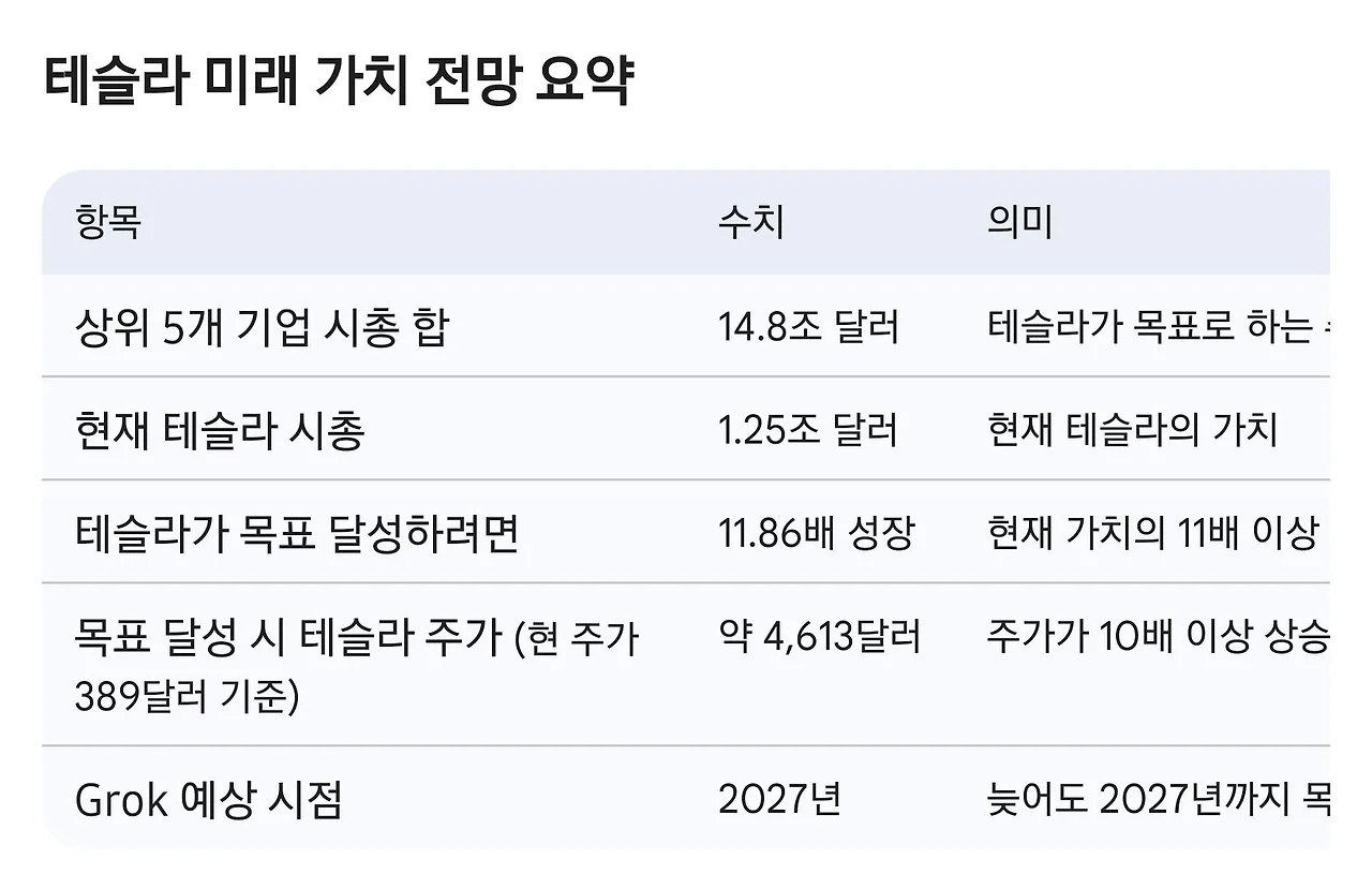 2027년: 테슬라 시가총액 25조 달러 달성 목표