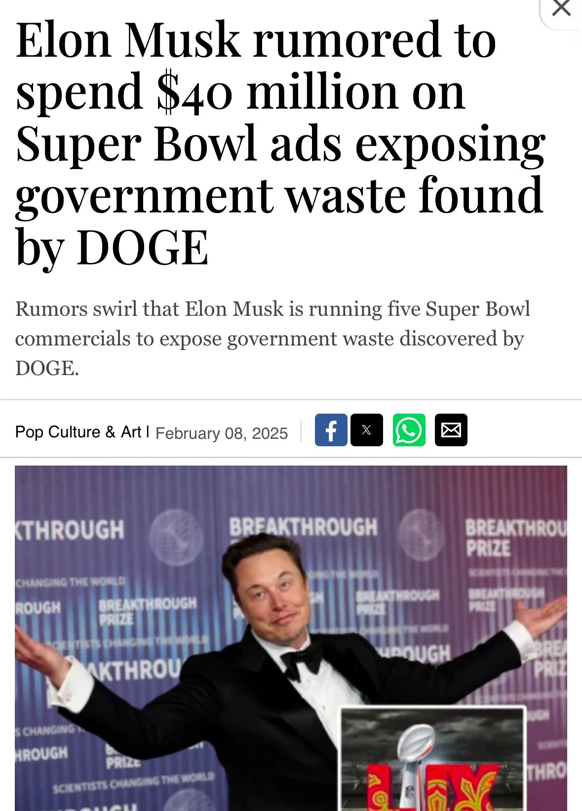 "일론 머스크가 슈퍼볼 광고에 4천만 달러를 지출하여 DOGE(도지코인)와 관련된 정부 낭비를 폭로하는 내용을 담은 광고를 제작할 것이라는 소문"을 바탕으로 상세 분석과 추가 정보를 제공해 드립니다.