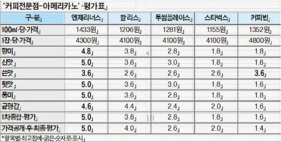 커피 전문점 아메리카노 평가표 및 SWOT 분석