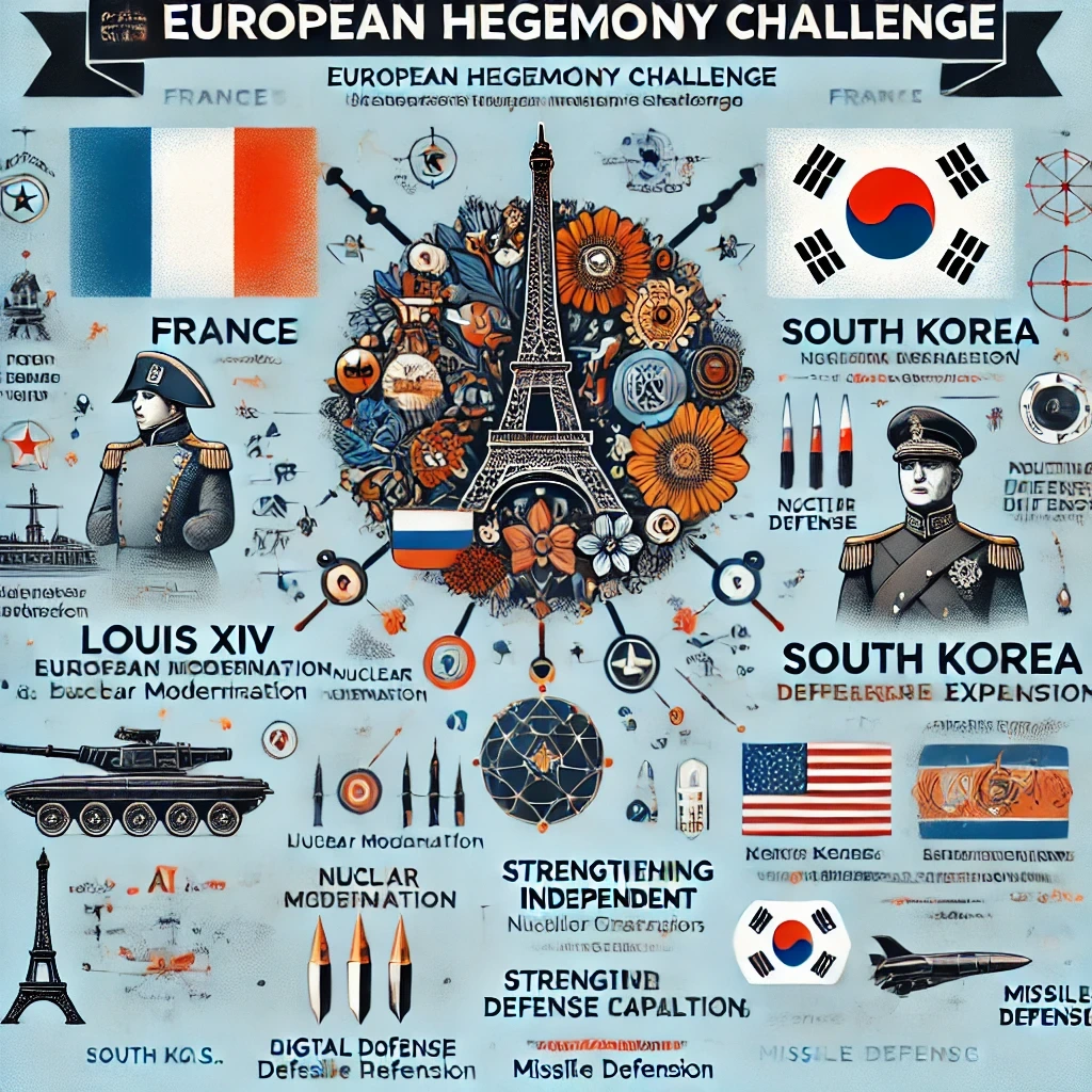 결론적으로, 프랑스의 유럽 패권 도전은 미국 중심의 국제 질서 변화와 더불어 유럽 각국이 자주적 안보 체계를 모색하는 과정에서 중요한 사례로 부각됩니다. 한국은 이러한 변화 속에서 한미동맹의 재구축과 자주국방 체계의 강화를 통해 변화하는 안보 환경에 대응해야 하며, 동시에 디지털 국방 혁신을 통해 미래 전장에 대비하는 다각적 노력이 요구됩니다.