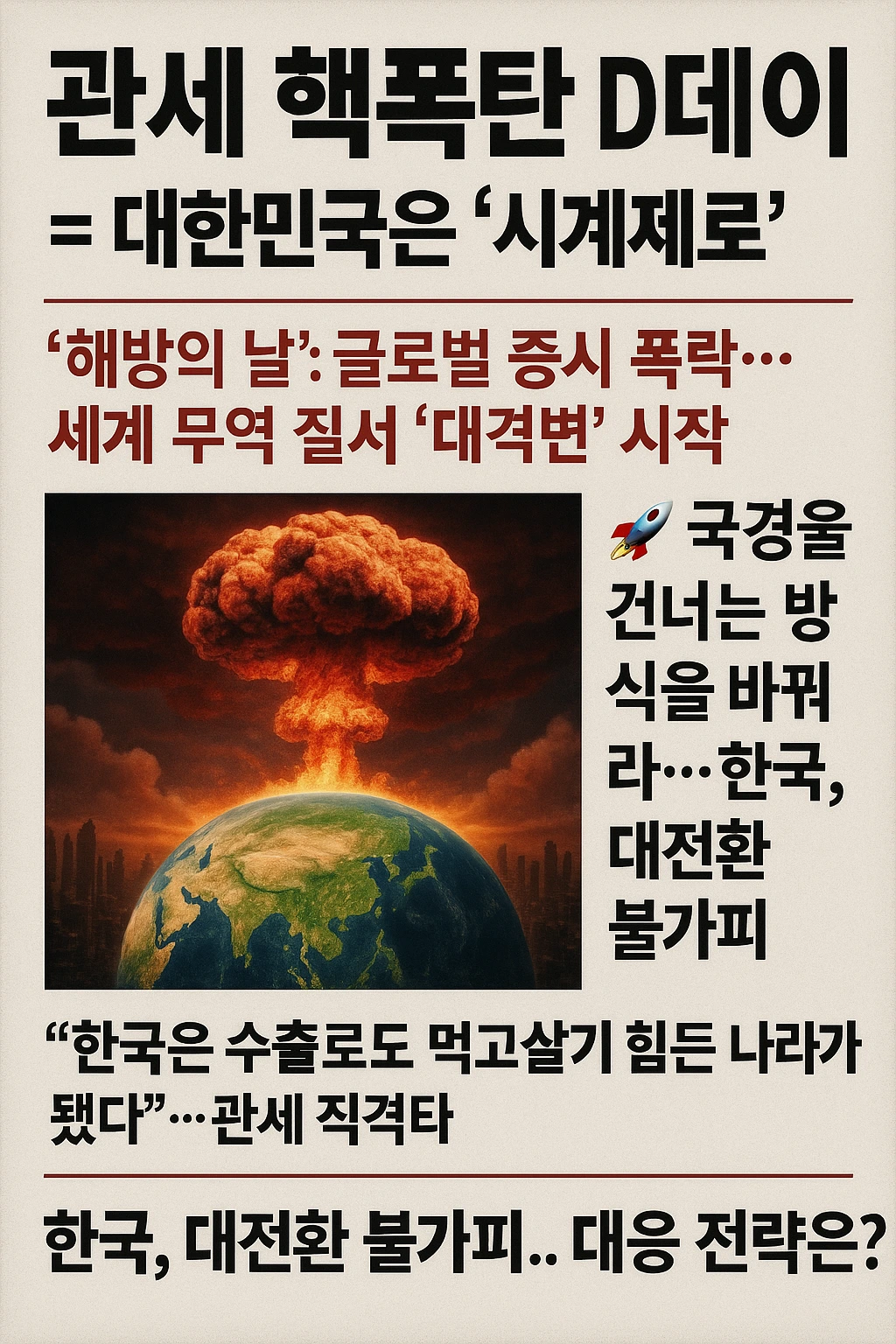 * 이는 단순한 관세 인상이나 무역 분쟁을 넘어, 특정 국가(혹은 복수 국가)가 한국의 핵심 수출 산업을 겨냥하여 사실상 수출 길을 막아버리는 수준의 초고율 관세를 동시다발적으로 부과하는 '경제적 핵공격'에 비유될 수 있습니다.
