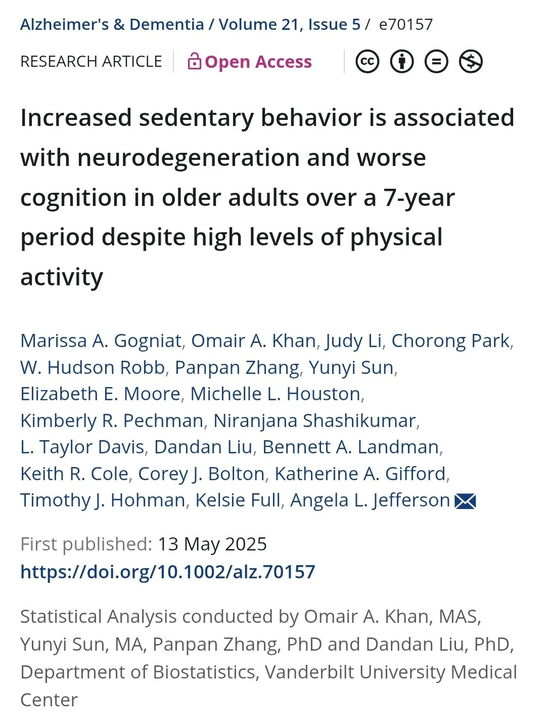 이 연구는 단순히 '운동 부족'이 문제가 아니라, '과도한 앉아있는 시간' 그 자체가 독립적인 위험 요소임을 명확히 보여주었습니다. 운동을 규칙적으로 하는 사람이라도 하루의 대부분을 앉아서 보낸다면, 뇌 건강을 안심할 수 없다는 경고입니다.