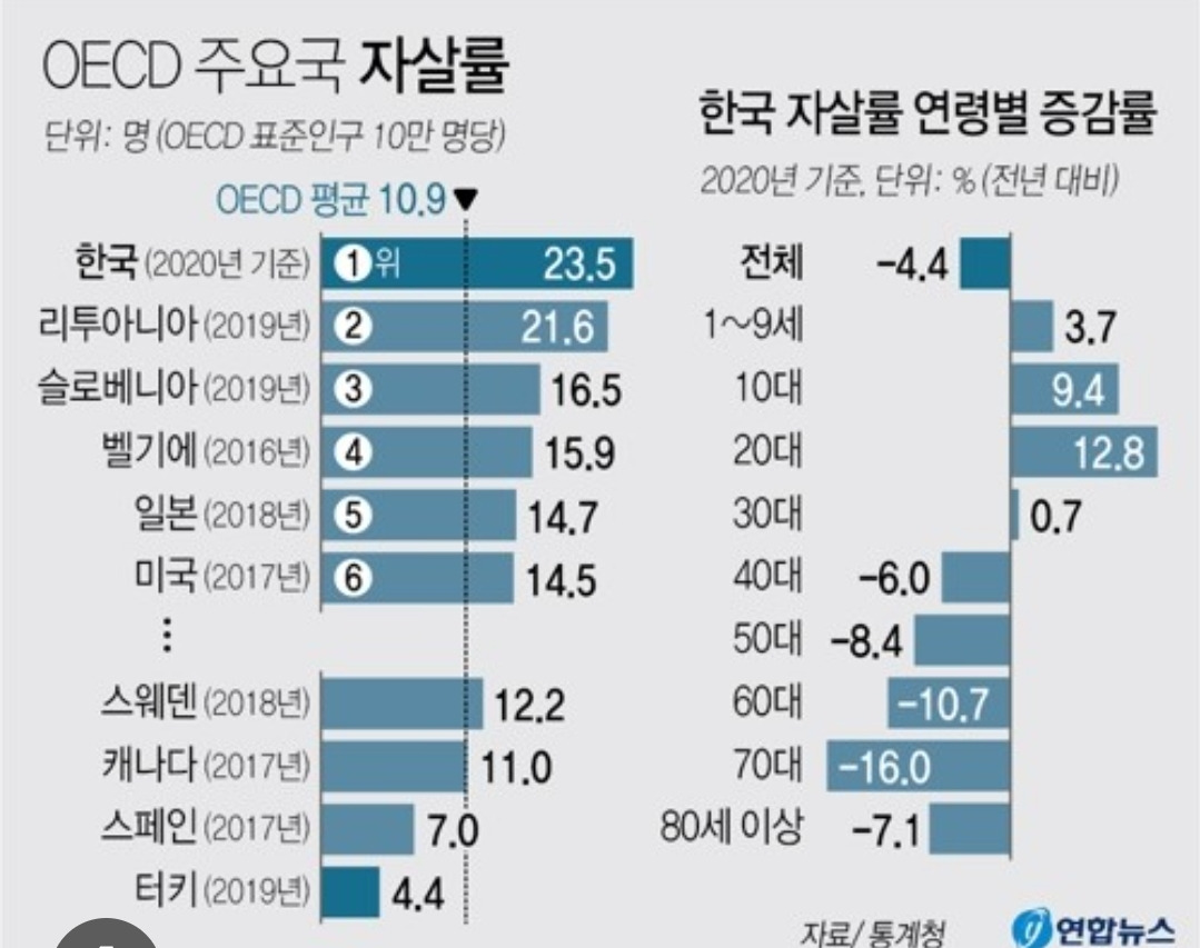 - 문화적 압박, 사회적 고립, 정신건강 인식 부족 등이 자살률 증가와 관련이 있을 가능성이 높습니다.