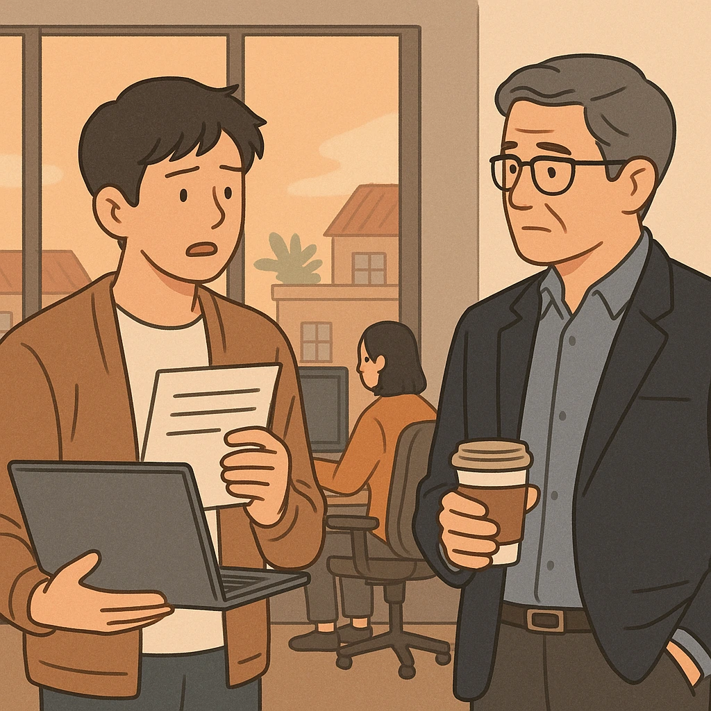 말끝을 흐리는 팀원의 얼굴엔 불안이 어려 있었고, 막 회의실에서 나와 커피를 들고 있던 대표는 잠시 멈칫했다.