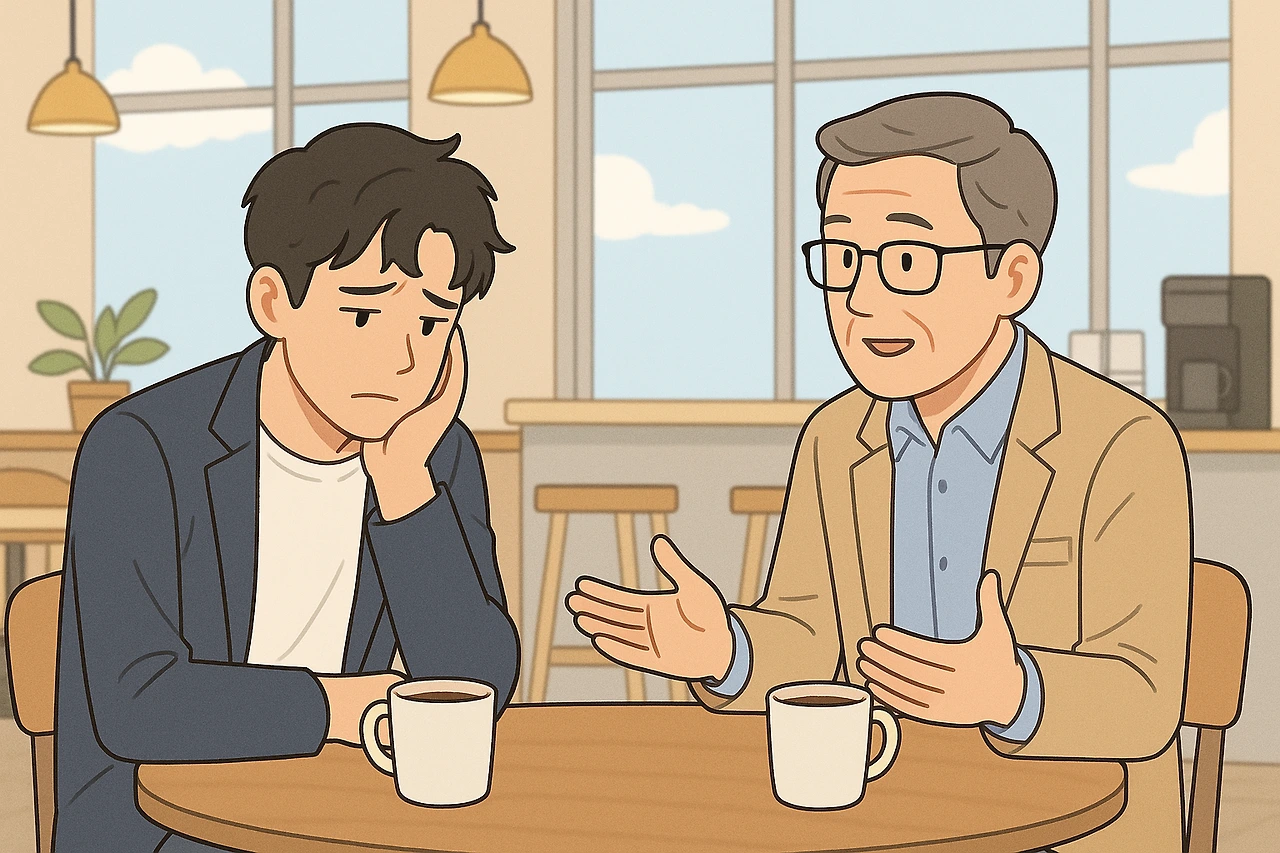 그는 조용히 커피를 휘저으며 말했다.
