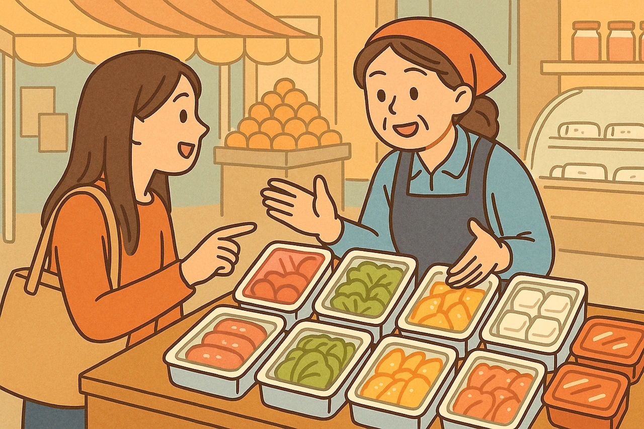 전에는 반찬을 큰 접시에 쌓아두던 가게가 있었다.
