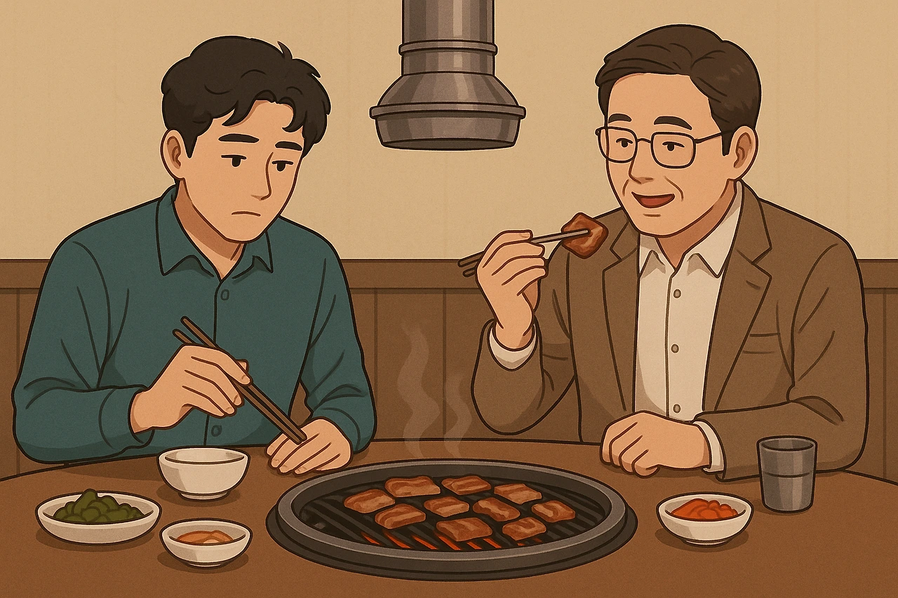 점심시간, 불판 위에서 지글지글 고기가 익는 소리가 묘하게 위로처럼 느껴졌다.