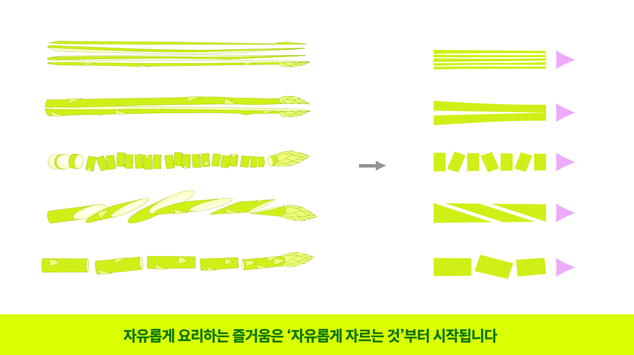 자유로운 선택이 모여 조화로운 요리를 할 수 있다는 가치 제안. 'Asparadise Way' 카드를 통해 조화로운 요리를 위한 정보 제공