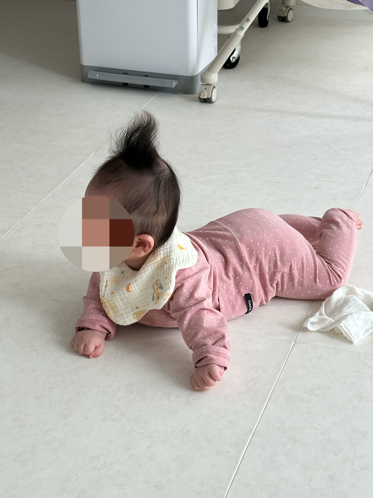 혼자 뒤집고서 엎드려있을 때 침을 줄줄 흘리고 같이 토도하고 나와 눈 마주쳐서 갑자기 웃다가 토 반복이다. 침받이가 선물 받은 거 3개가 있었는데 감당이 안돼서 급하게 10장을 더 샀다. 재밌는 건 하루에 다 쓸 때도 있다. ㅠㅠ