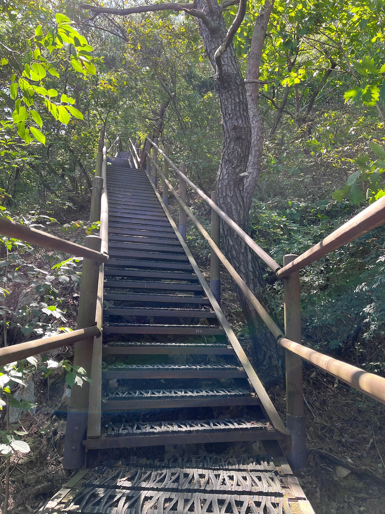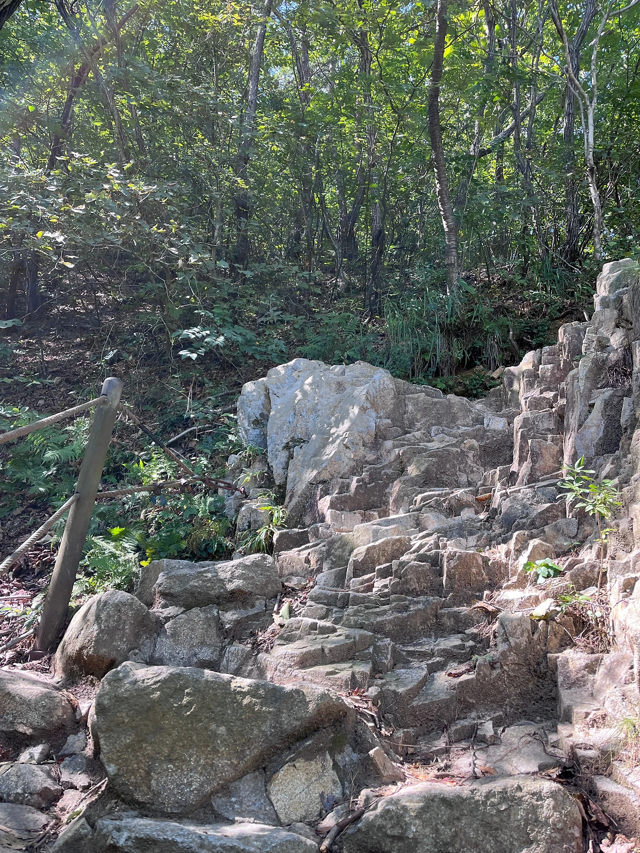 더 큰 문제는 등산화만 신었을 뿐이지, 스틱이 없었다는 사실! 0.9km 지옥 길은 시작부터 끝까지 경사가 45도는 될 것 같은 가파른 오르막길의 연속이었다. 그나마 계단으로 정비가 되어 있는 구간은 좋은 길이었고, 대부분 바위산을 맨손으로 등반하는 기분이었다. 두 손을 사용해 네 발로 기어오르다시피 올랐다. 오르다 지치면 손으로 짚고 오르려던 바위 위에 그대로 뒤돌아 앉았다. 다시 바위를 붙잡고 올랐다. 꼬박 한 시간을 기어 올라갔다. 처음 1/3은 '설마 계속 이런 오르막이겠어?'라는 생각에 올라가는 것을 멈추지 않았고, 나머지 2/3은 올라온 길로 차마 내려갈 수 없어서 어쩔 수 없이 앞으로 전진했다. 기어오르는 건 가능했지만, 그 가파른 바위산을 맨손으로 내려갈 방도는 생각나지 않았다.