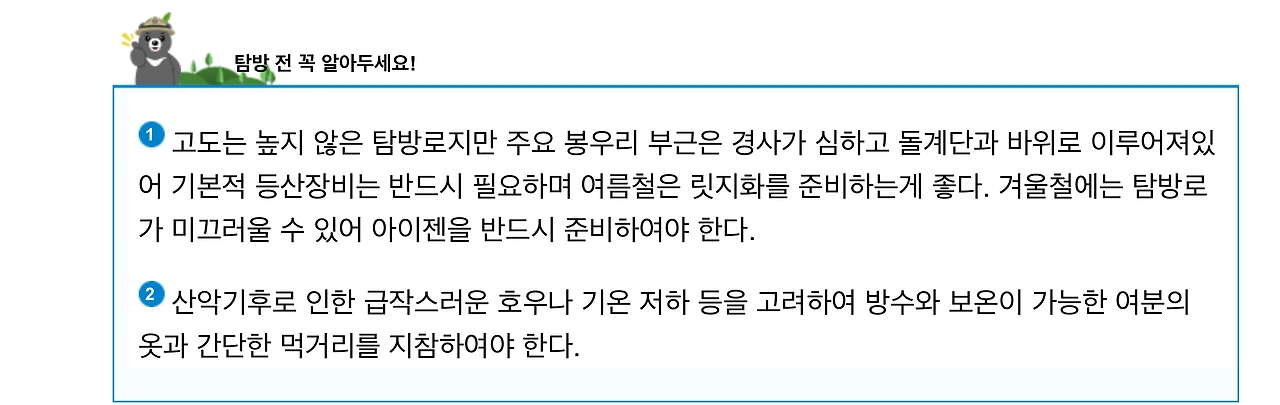 ✽ 참고로 필자는 저질 체력이다. 다리에 쥐가 자주 나는 편이라 등산을 즐겨하진 않는다. 그럼에도 일찍이 산에 오르는 기쁨을 알게 되어 설악산, 한라산, 지리산, 덕유산, 무등산, 월출산, 내장산 등 국립공원의 주요 봉우리와 그 밖의 크고 작은 산들에 오른 경험이 여럿 있음을 밝혀 둔다. 만약 당신이 산을 다람쥐처럼 뛰어다니는 사람이라면, 이 글에 공감하기 어려울지 모르겠다.