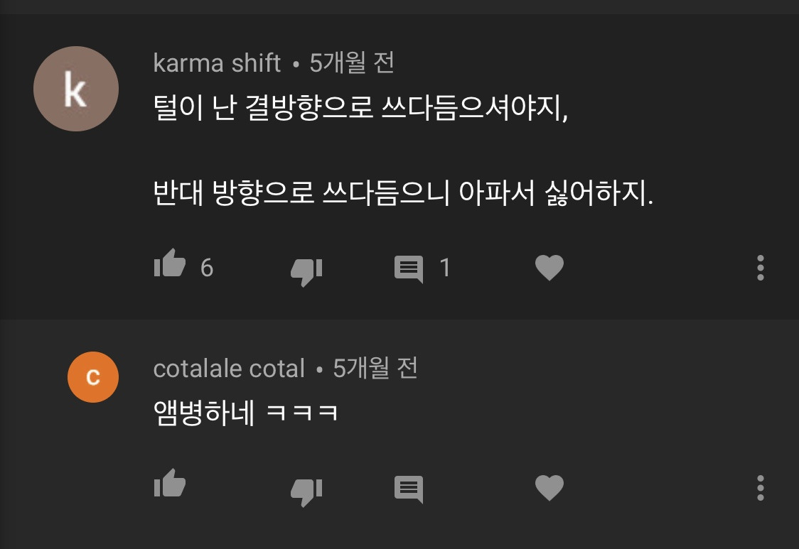 마지막 댓글은 꽤 최근에 달린 것인데 생일을 맞아 남편과 함께 교외 나들이를 갔다 돌아오던 길에 알림을 받고 확인했다. 마침 노을이 지는 다리 위를 기분 좋게 드라이브 하고 있던 타이밍이었다. 사이코패스라는 말의 뜻도 모르는 사람의 수준 낮은 댓글 따위 생일의 상콤함으로 패스하려고 해도 자꾸만 머릿 속을 붕붕 휘저었다. 대체 그 영상의 어떤 부분에서 사이코패스가 떠오른 거지? 고작 구독자 2천 따리가 이런 뜻 모를 회초리를 맞는데 2만, 20만 유튜버에겐 어떤 가시 돋힌 말들이 박힐까? 행복했던 생일은 어느새 찝찝함으로 가득 차 버렸다.