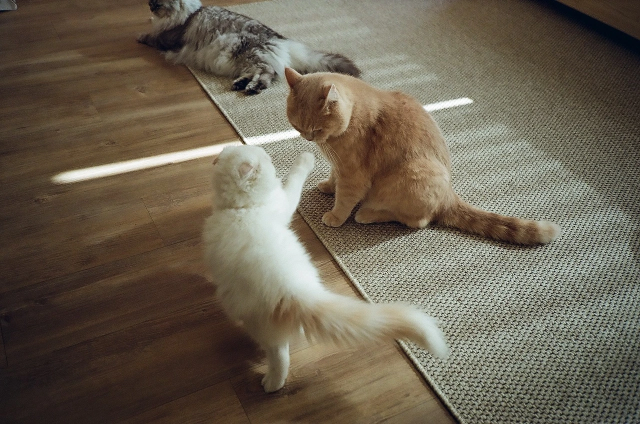 아홉 살, 열 살, 여섯 살 된 고양이들 눈에 덕구의 첫인상이 어땠을까. 덕구를 데려오기 전에 나는 덕구의 적응력을 걱정했는데, 막상 합사를 시작하고 보니 적응을 해야 하는 건 덕구가 아니라 나머지 고양이들 쪽이었다. 덕구는 매일 문을 열어달라고 소란을 피웠고 잠깐 열어주면 거실을 뛰어다니며 자유를 만끽했다. 짧은 다리로 형아들의 식탁을 탐하고 형아들의 장난감을 탐했다.