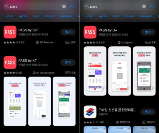 앱스토어나 플레이스토어에서 ‘PASS’를 검색하면