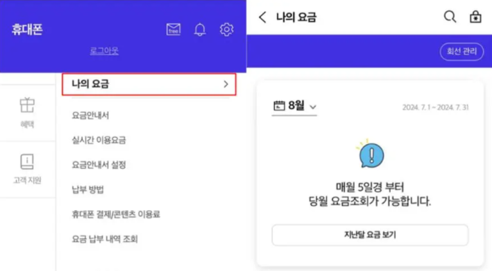 미납된 요금은 통신사 앱이나 홈페이지에서