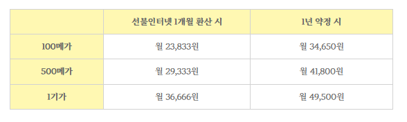 1년 약정 이용 시 선불인터넷을 이용하자.