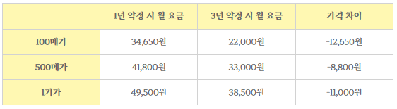 3년 약정을 가입하는 게 훨씬 이득입니다.
