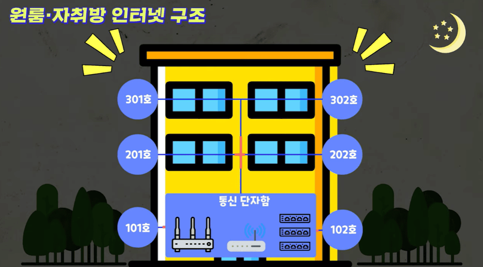 일반적인 자취방 인터넷은 하나의 회선을 사용하여