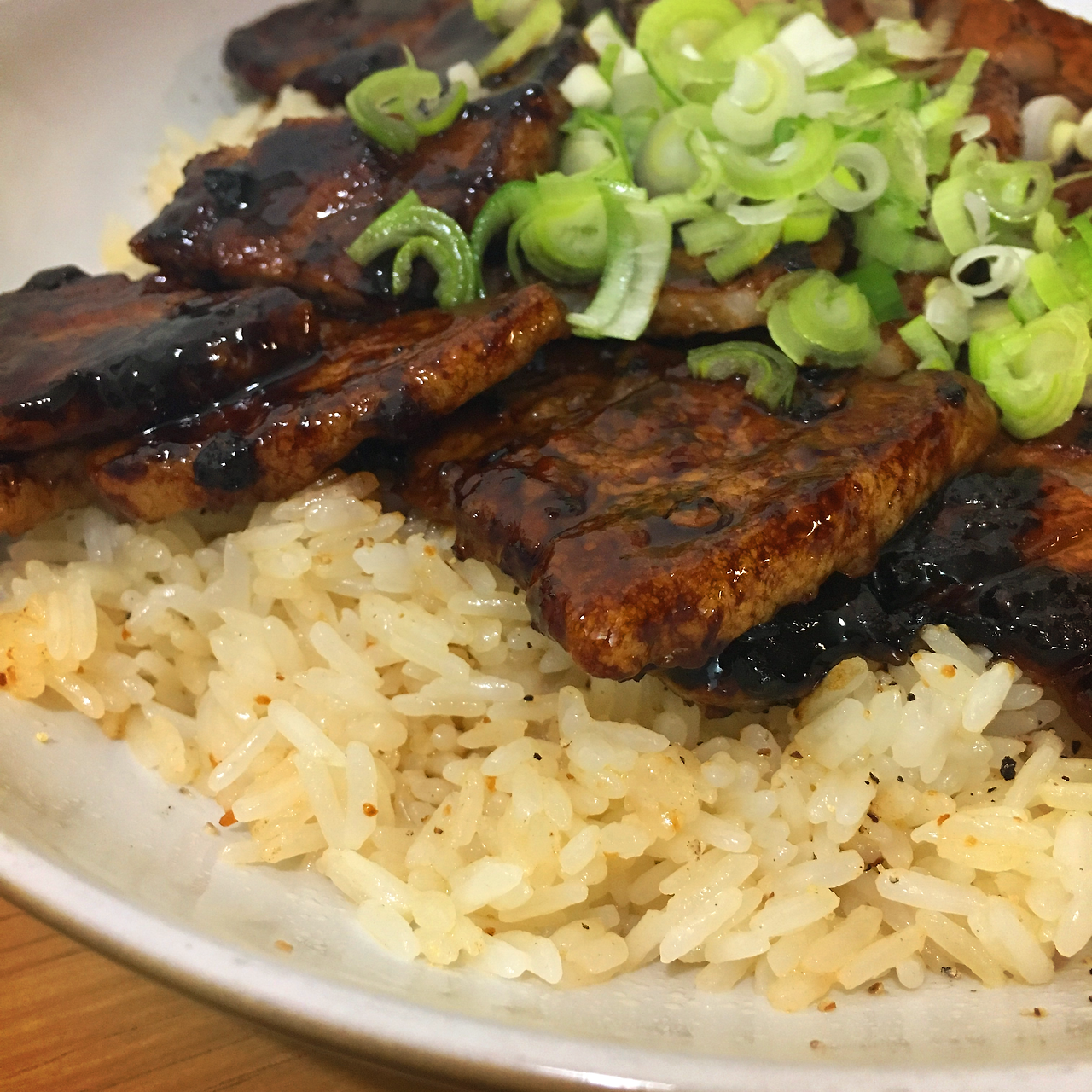 커다란 웍에 파 기름을 살짝 내고, 집에 먹다 남은 삼겹살이나 돼지고기 목살을 적당한 크기로 잘라서 볶아 준다. 어느 정도 고기가 익었을 즈음에 재스민 쌀로 만든 밥을 넣고 부슬부슬하게 밥을 볶아 준다. 다 만들어진 볶음밥 위에 쪽파를 송송송 잘라서 얹으면 보기에도 좋고, 신선한 식감도 살아나지만 그게 없다면 그냥 이것 만으로도 충분하다. 좀 더 태국적으로 즐기고 싶다면 반숙한 계란 프라이를 하나 올리고, 쥐똥 고추 혹은 청양고추를 썰어 넣은 피시소스를 살짝 뿌려서 먹는 것도 좋은 한 끼가 될 듯하다.