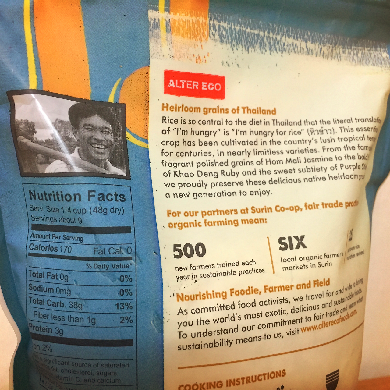 그중에서도 내가 최근에 자주 구매하는 식재료는 바로 'Jasmine Rice'이다. 이 쌀은 인디카 장립종계의 향미쌀로서 주로 태국과 베트남 등지에서 재배가 된다고 한다. 밥을 지을 때 나는 특유의 향도 참 좋지만, 나는 이 재스민 쌀의 식감이 참 좋다. 부슬부슬 부서지는 듯한, 한 알 한 알 날아가는 듯한 느낌의 식감이 볶음밥을 해 먹기 딱 좋은 텍스처를 가지고 있다고 생각한다. 제품 패키지와 홈페이지를 참고해보면, 이 Jasimine Rice는 태국의 RUNGROJ KAJUTROTHA이라는 농부가 기른 쌀이라고 한다. 아버지를 통해 어렸을 때부터 농사일을 배운 RUNGROJ는 20살 때 지역 NGO 단체를 통해서 작은 규모로도 제대로 값을 받고 제대로 된 친환경적인 농사를 지을 수 있는 방법들에 대해서 교육을 받았고 한다. 이 일들이 현재까지 이어져 이 귀한 JASMINE RICE가 나에게까지 이어져 오고 있나 보다.